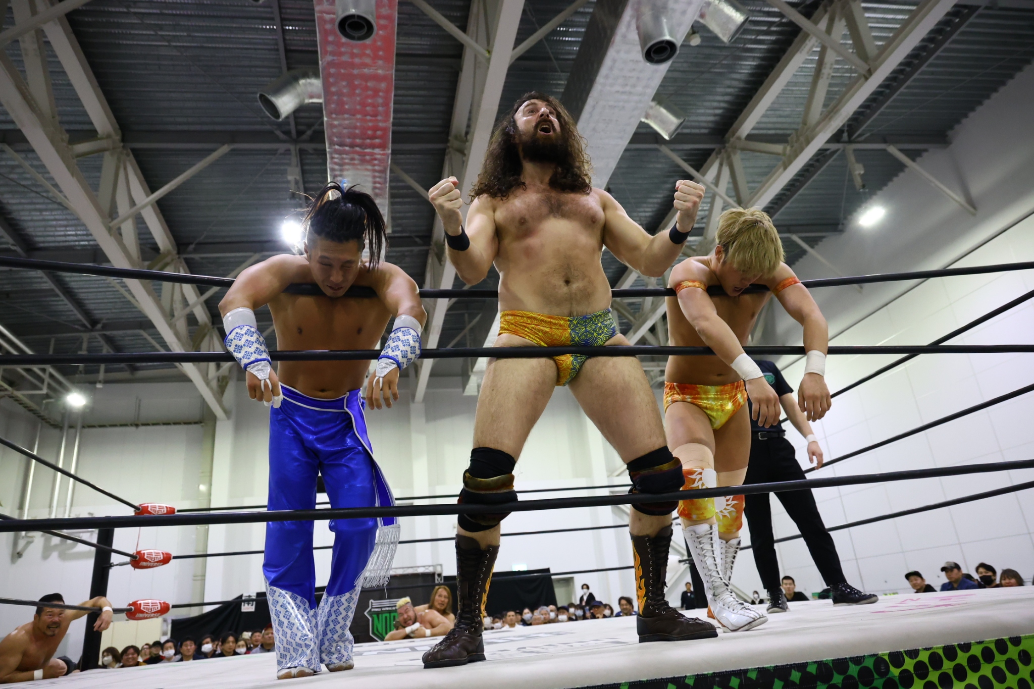 【試合後の征矢&サクソン&YO-HEY】