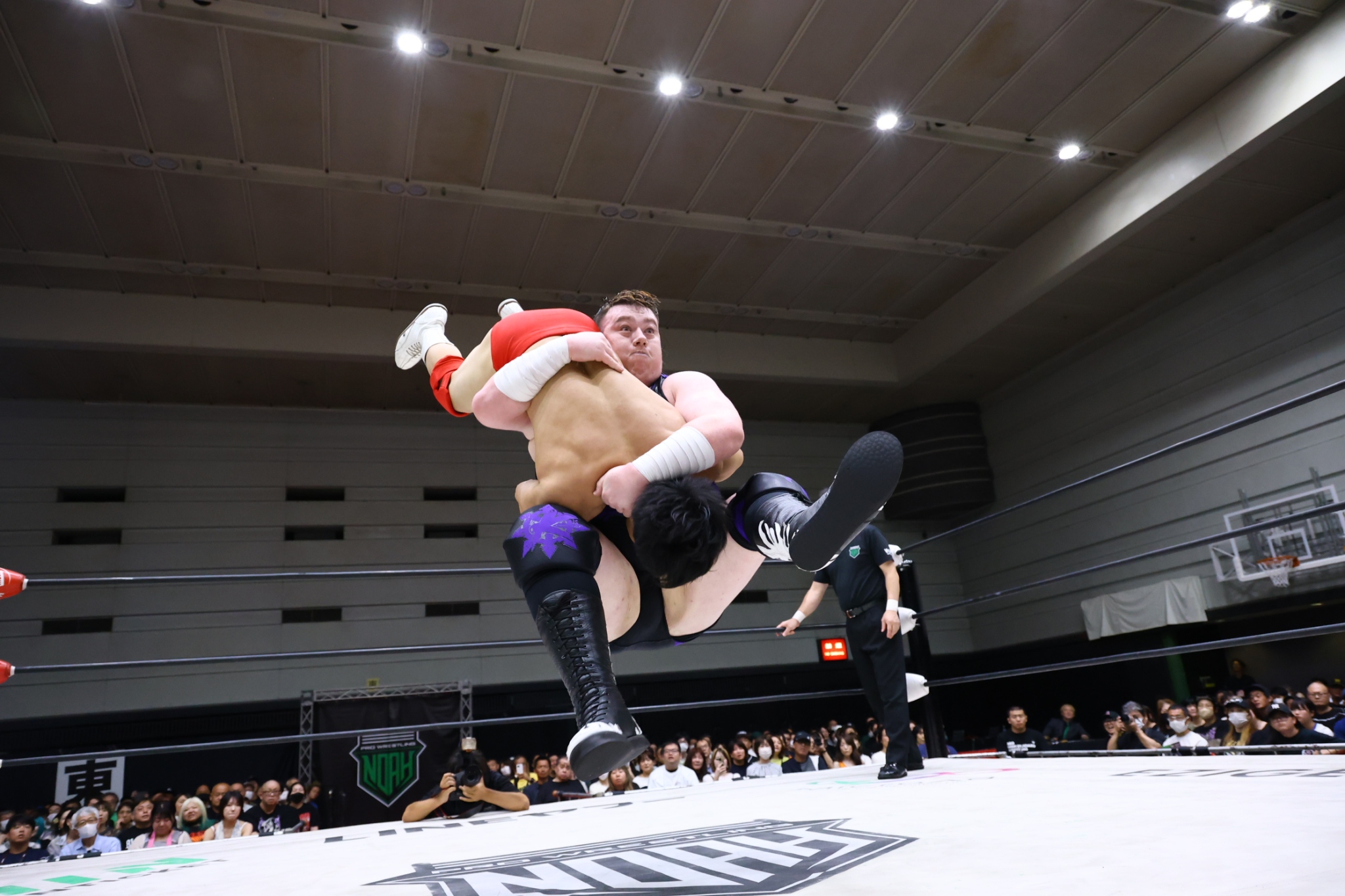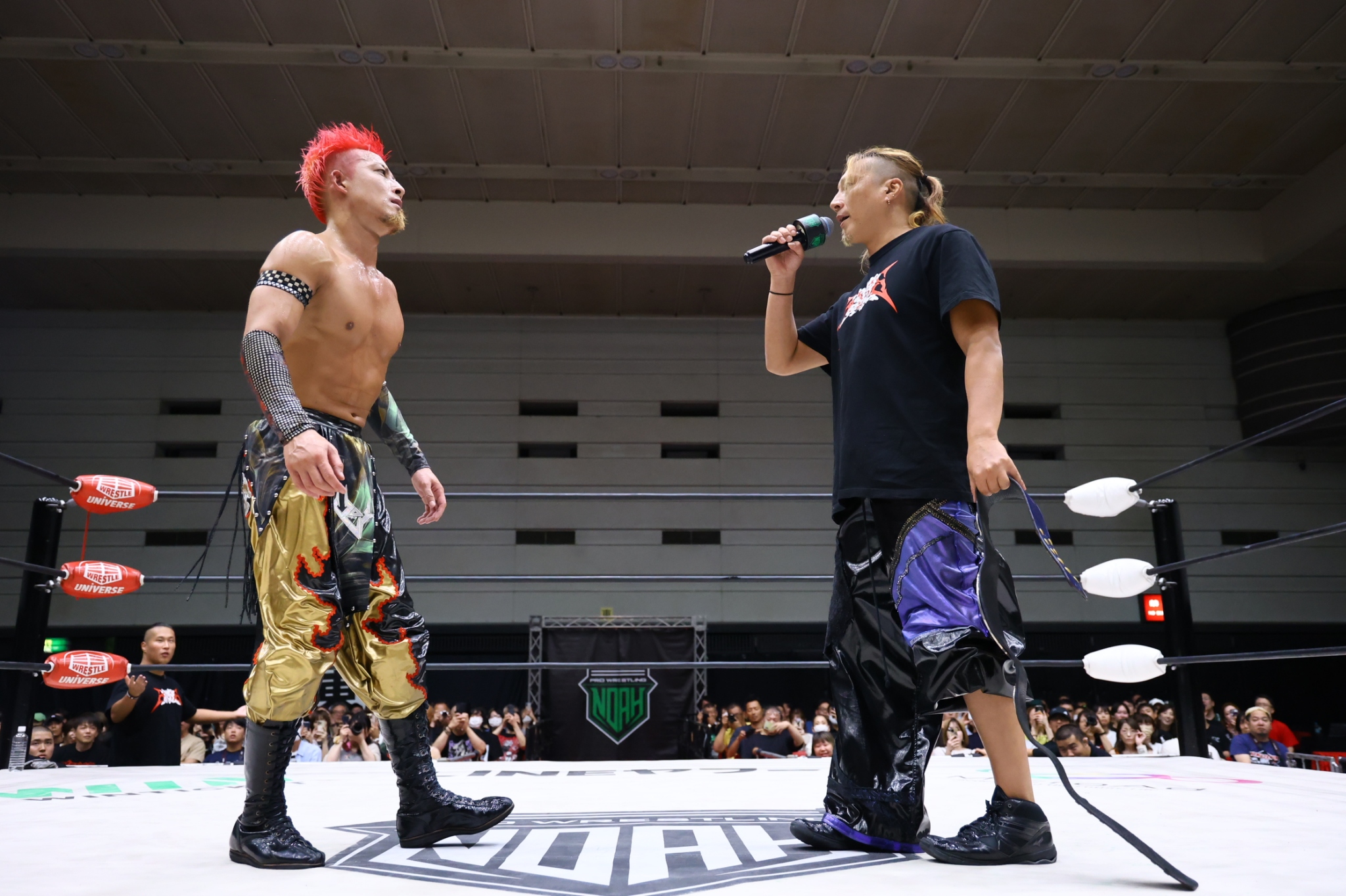 【クロスの話】「ついに初めてNOAHの方舟に乗船した。今日の対戦相手のダイキ、本当にガッツがあるし、ハートがある素晴らしい選手だと思うけれど、残念なことに俺は大きくて危ないガイジンだ。またみんなに会えることを楽しみにしている」