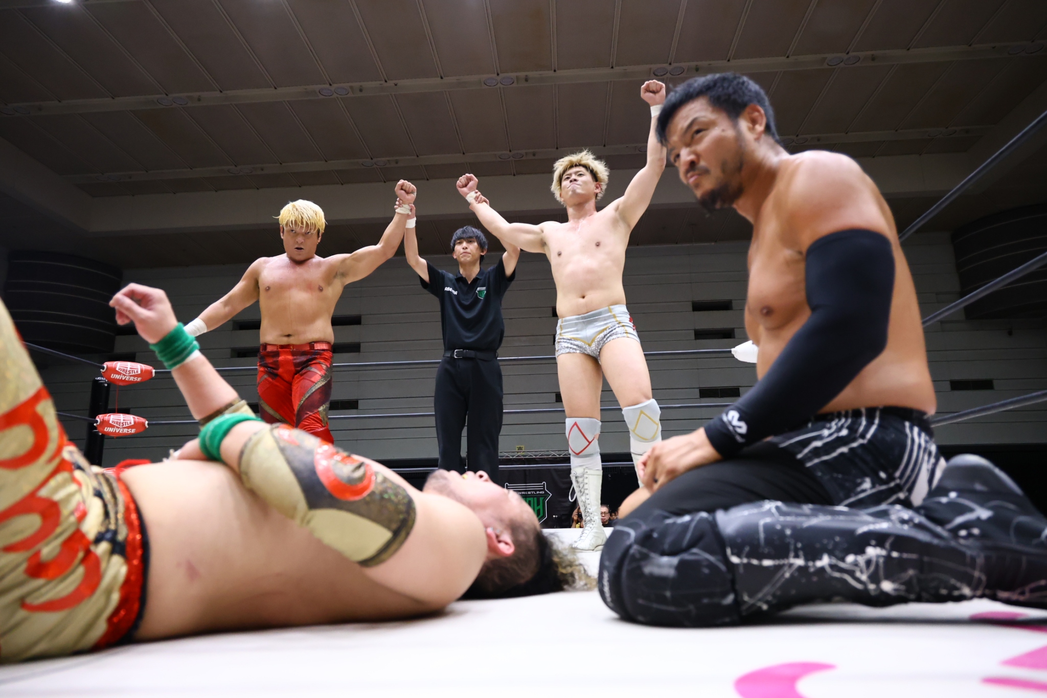 【試合後の杉浦&ダガ、ヨシ・タツ】