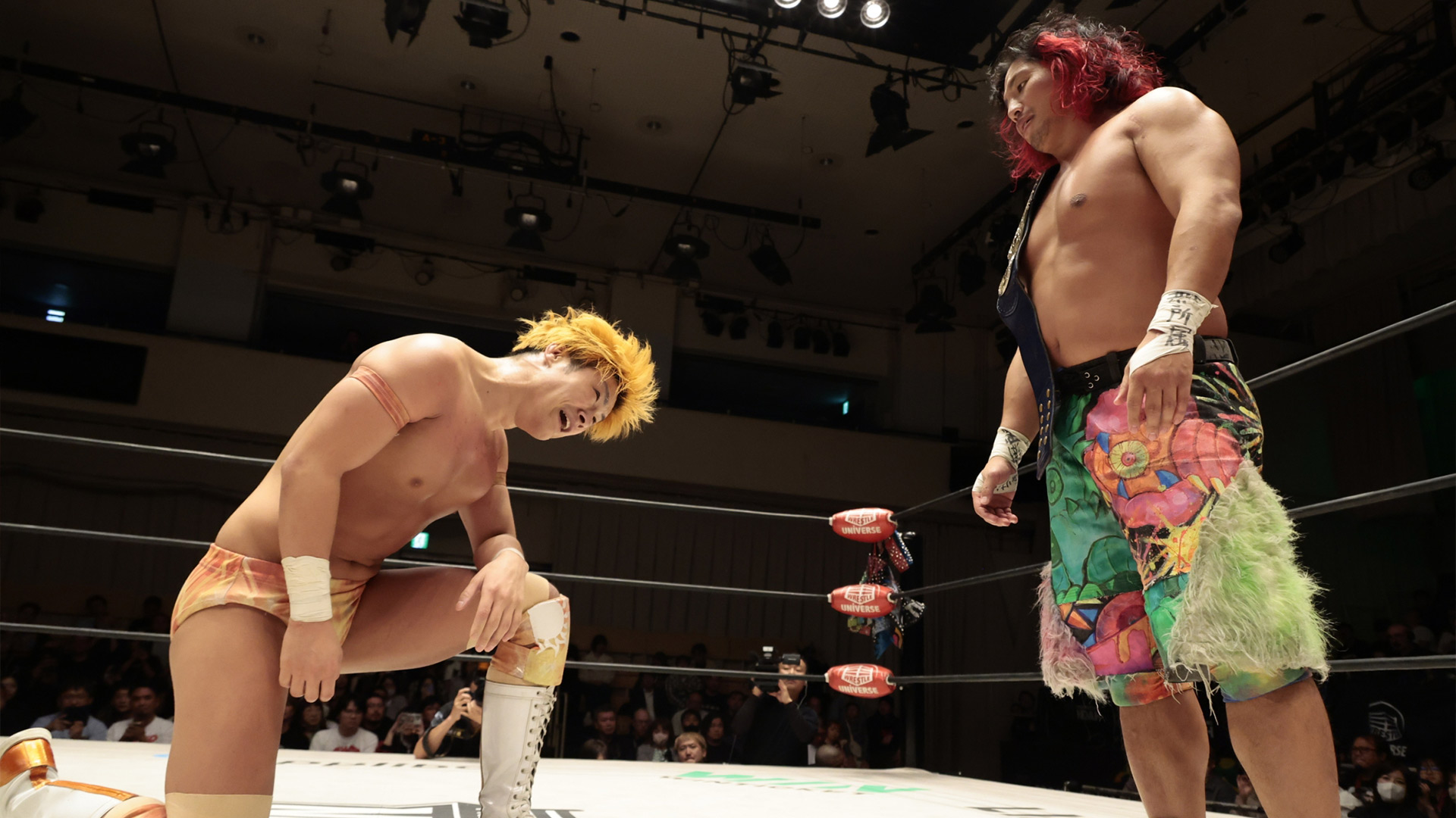 【征矢の話】「俺の気持ち変わってないよ。菊池がどういう気持ちで情熱RATEL'S一時脱退と言ったのか、正直分からない。ただ、『YO-HEYのいない情熱RATEL'Sは情熱RATEL'Sじゃない』って言ってたよな。それは耳に入ったぞ、しっかりリング上で。でも実際だよ。今ここにYO-HEYはいないんだよ。俺たちで盛り上げていかなきゃダメだろ。そんなにな、菊池が情熱RATEL'S抜けて、何かやりたいことあるんだったら好きにやればいいよ。俺はYO-HEY、そして稲葉の帰りを待つだけだ。それとな! 一つ。俺にはイギリスのサクソンがいる。サクソンよ、カムバック・ジャパン! アイ・ミス・ユー。アイ・ウォント・ユー! お願いします、サクソン! 大至急、日本に戻ってきてくれ。これ見てんだろ? 流しとけよ、イギリスにも」