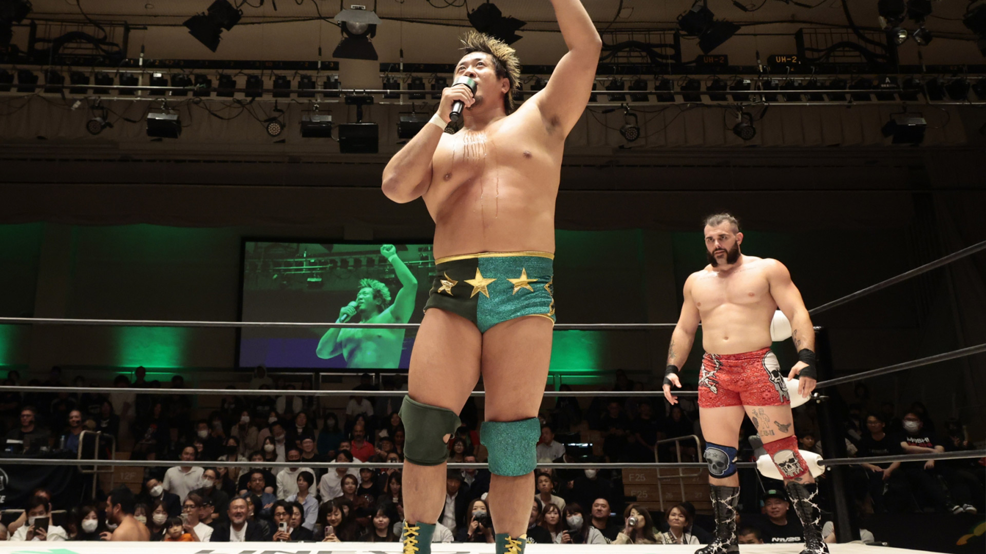 【Yoshikiの話】「アット・ファースト、最初に。サンキュー、ミスターKENTA。僕のチャレンジをアクセプトしていただいてありがとうございます。僕は本当にミスターKENTA、あなたとGHCヘビーウェイトのベルトをかけてファイトできることがとてもとても楽しみです。アイム・エキサイティングです。そして、この後楽園ホール。この場にプロレスリング・ノアのレスラーとしてカムバックできたこと、本当に幸せに思います。ファンの皆さんもですが、ぜひ記者の皆さんも、このYoshiki Inamuraをぜひ見続けて、キープ・ウォッチングし続けてください。ありがとうございました。サンキュー・ソー・マッチ」