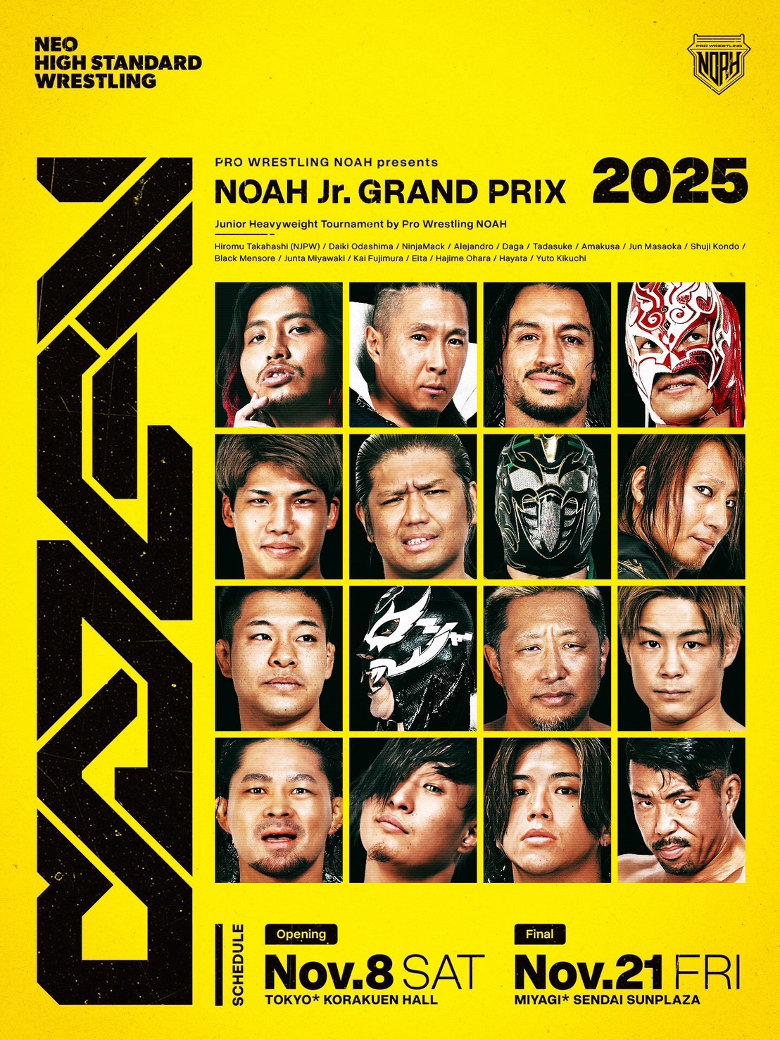 全16選手が参戦するジュニア最強決定戦「NOAH Jr. GRAND PRIX 2025」が、いよいよ開幕する。