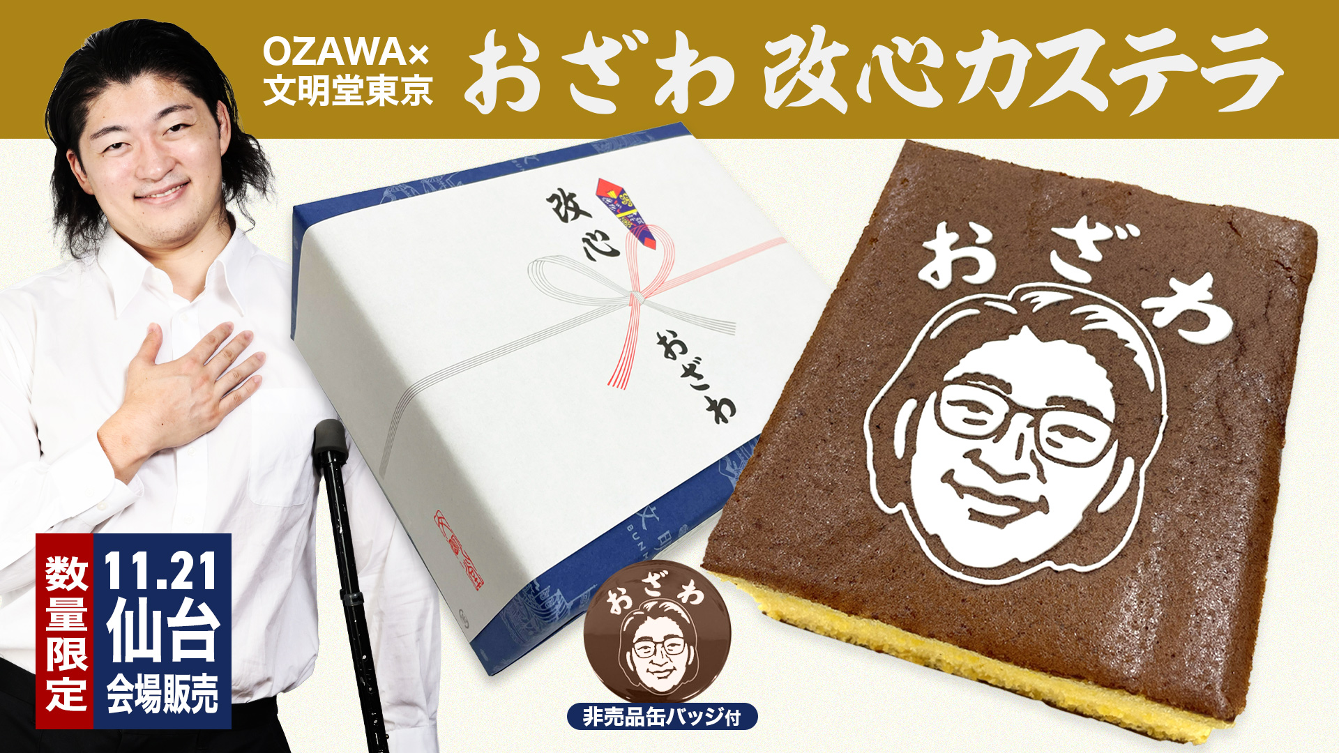 OZAWA選手のYouTubeチャンネルにて告知がありました通り、OZAWA選手が、日頃の感謝の気持ちを込めてプロデュースした「おざわ改心カステラ」の販売が決定いたしましたのでお知らせいたします。