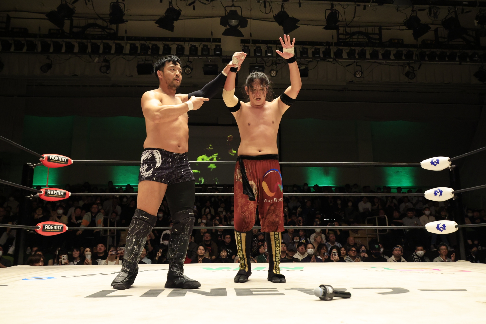 ▼遠藤「OZAWAは去年1年、MVPに近い活躍をして、そのOZAWAにシングルマッチで勝ったから、GHCヘビーのベルトも見えてくるんじゃないの? 今日メインでどうなるかわからないけど、どっちが勝つかわからないけど。俺の目標、やっぱりね、NOAHに1年間参戦して、NOAHのトップを獲るって俺の中で決めてるけど、やっぱり俺の生まれはDDTだから。DDTプロレス、そこで培ってきた、育んできたものを忘れずに、明日から戦っていきたいと思います。明日は前橋! 皆さん、ご来場お待ちしてます」