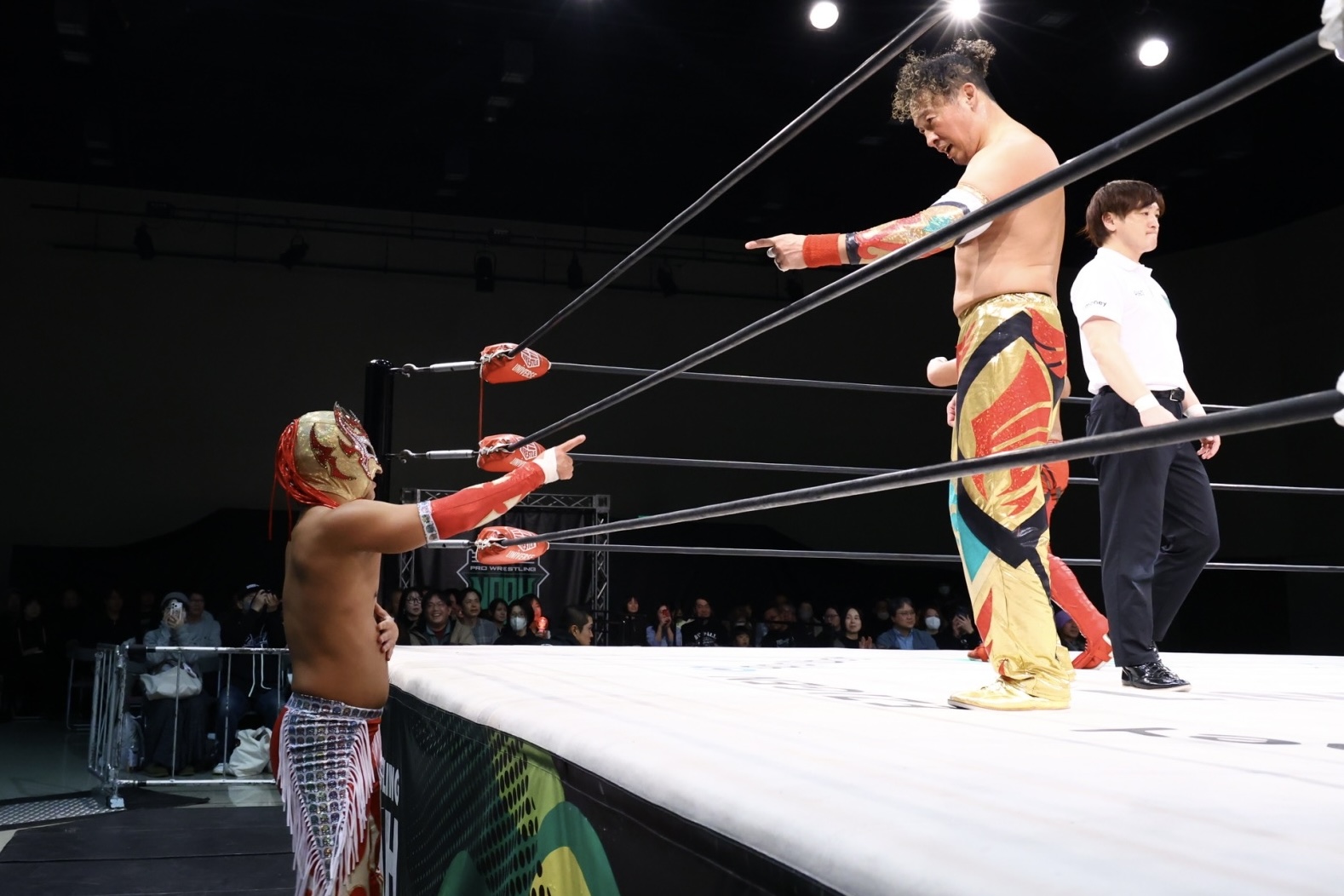 ダガも黙ってはいなかった。ジュニアタッグ王者としての連携力とスピードを武器に反撃し、ウルフを追い込む場面を作る。しかし、王者は動じない。標的をダガのパートナーである小田嶋に定めると、徹底的に圧力をかけ、最後は挑戦者の目の前で小田嶋から3カウントを奪取した。