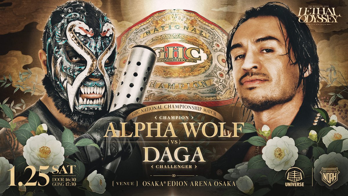 ダガは昨年、自ら「無差別級ファイター」を名乗り、その言葉通りの行動を見せてきた。今年早々には王者ウルフから直接ピンフォールを奪取し、GHCジュニアタッグ王者として異例のナショナル王座挑戦を実現。大阪でのタイトルマッチは、必然の流れとして組まれた一戦だ。