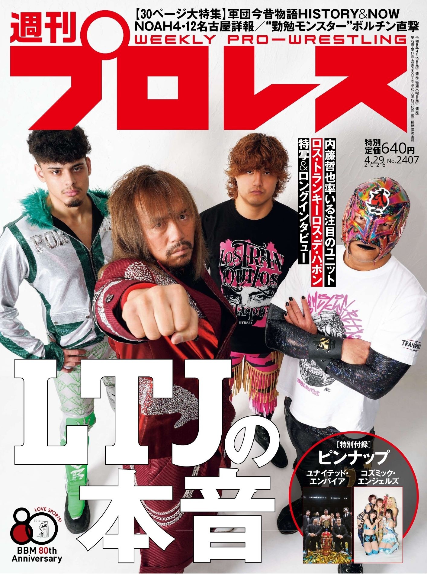 「週刊プロレス」4月29日号(No.2407)は、特別定価640円にて4月15日(水)より全国の書店、コンビニ、駅売店で発売。