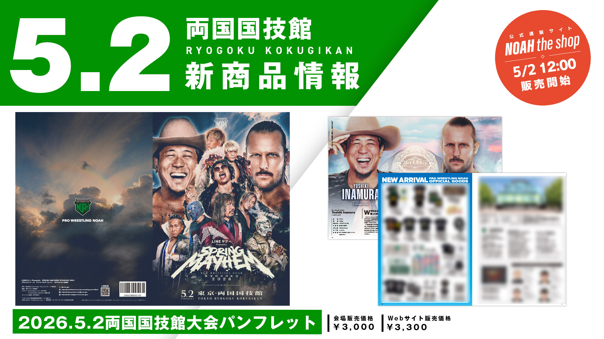 5月2日(土)に開催される、プロレスリング・ノア年間最大級のビッグマッチ『SPRING MAYHEM RYOGOKU 2026』両国国技館大会にて、新商品の発売が決定いたしましたのでお知らせいたします。