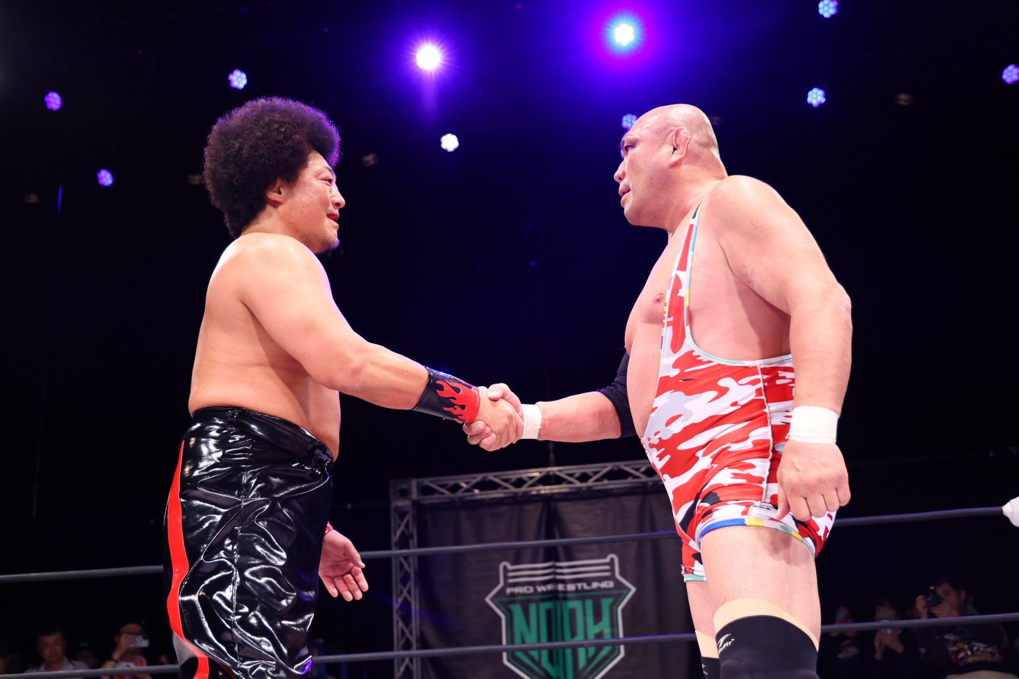 【政岡の話】「おい、BUSHI。後楽園ではちょっと熱くなったけど、その怒りもちょっと落ち着いてきたと思ったけどよ。BUSHI、やっと熱くなったか。ノーDQ? 何でもいいよ。何でもやってやるよ。5月2日の両国国技館はプロレスリング・ノアに来た俺のターニングポイントにするぞ。そのターニングポイントはもちろん勝ってこそや。BUSHI、5・2両国国技館、俺がお前を潰す」