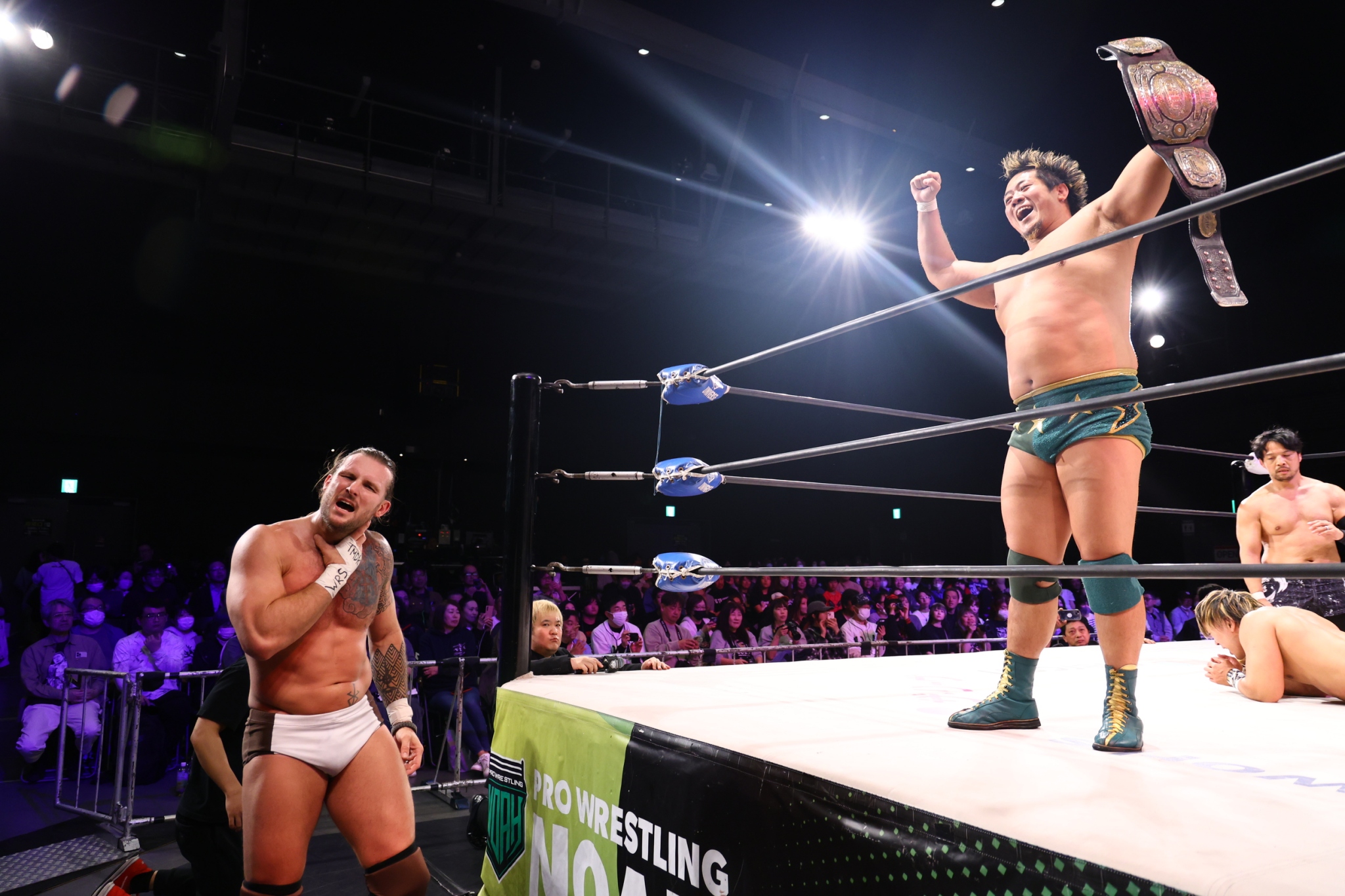▼KENTA「なんか今さ、どっちがメインだとかなんだとかって、OZAWA対内藤だ、シェイン対Inamuraだ、メインがどっちだとか言ってるけど、GHCがメインだろ、それは。決まってる。なあ?」