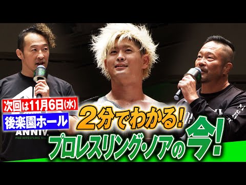 【清宮の話】「杉浦さん、丸藤さん、最高の試合を見させていただきました。いつまでも見ていたい。そう思ったのが正直なところです。杉浦さん、自分は杉浦さんに特にNOAHの歴史を、その背中を見て感じさせてもらってきました。ただ、新しいNOAH、もっともっと高いところに持っていくには歴史と向き合って変えていかないといけないと思ってます。今日、齋藤さんがおっしゃったように最高の試合をして、齋藤さんが安心して引退できるような戦いを俺が見せます。名古屋、皆さん、楽しみにしてください」
