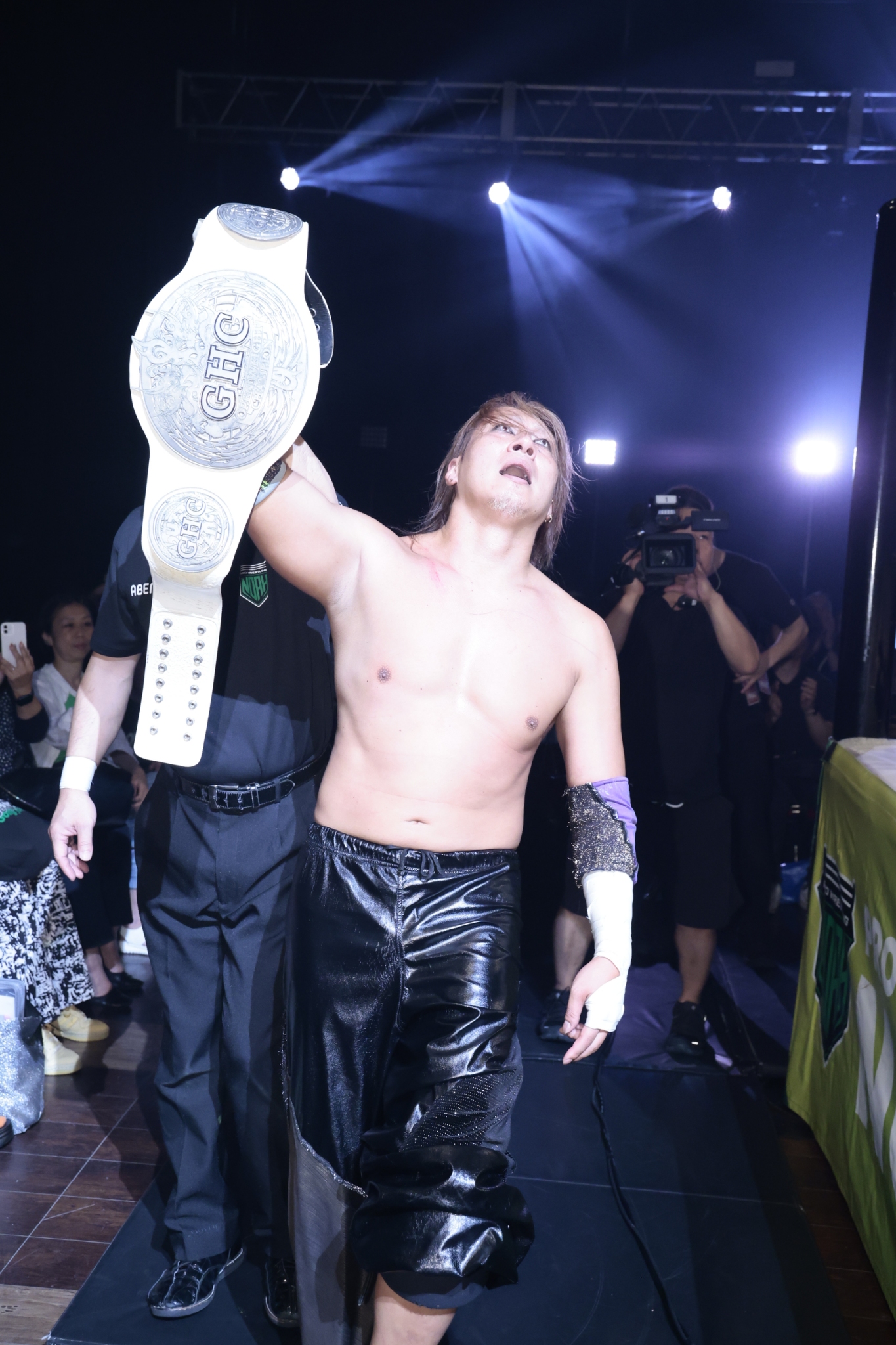 ▼YOSHI-HASHI「まあ、久しぶりにNOAHに上がって、やっぱスゲェいい刺激になったし。今日はね、ちょっとバスの、リングトラックの移動の関係で、棒を持って来れなくてさ。それがすごい心残りでさ。今日、もちろん誰が来るのか知らなくて。でも違う試合にKENTAいたでしょ? 次はKENTAと同じリングで、棒をちゃんと持って、魔法にかかりに来たいと俺は思いました。また」