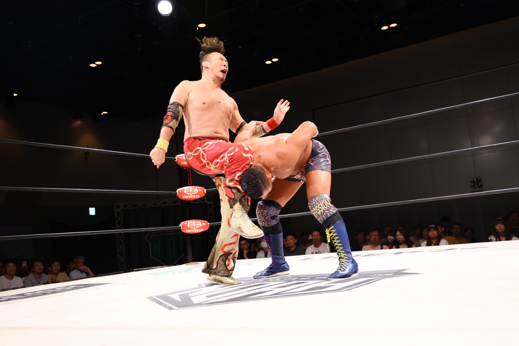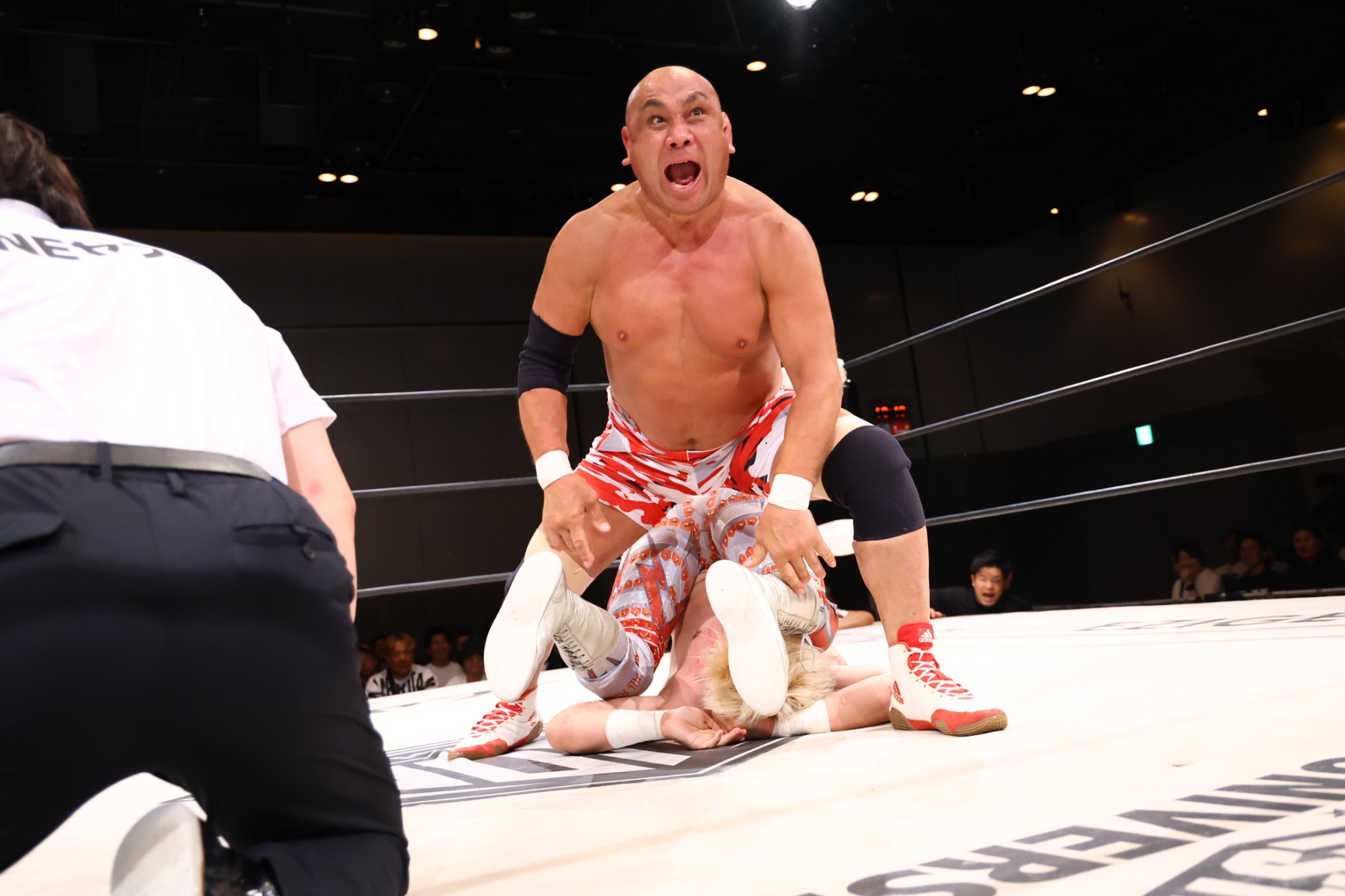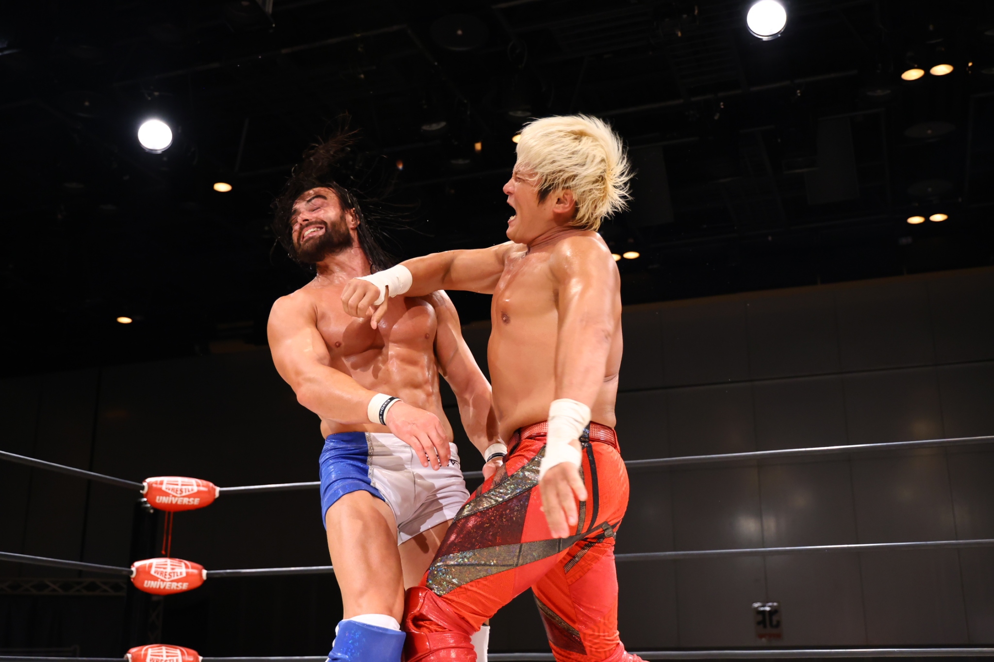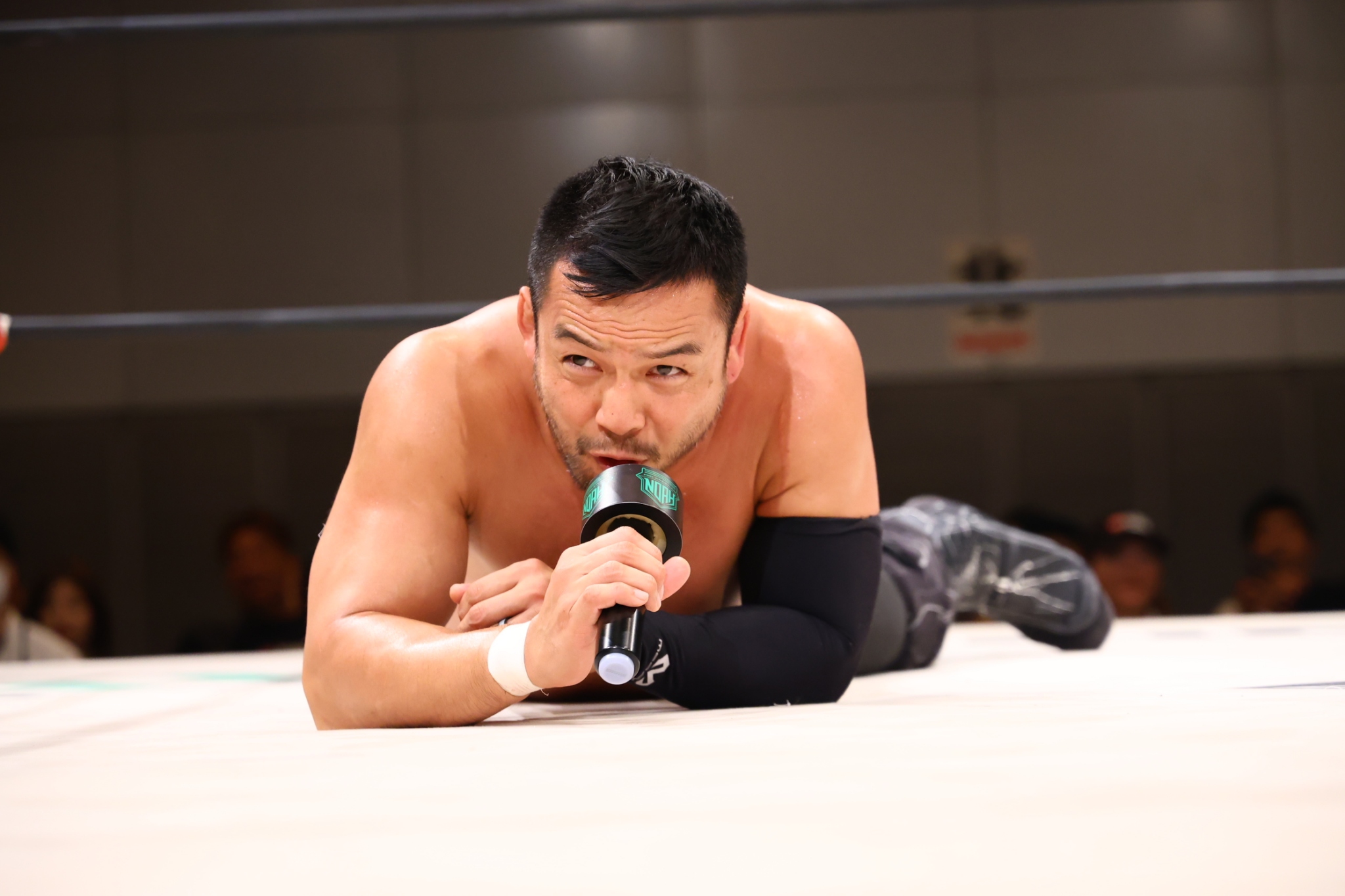 【KENTAの話】「勝ったろ? 勝ったの俺だろ? 文句ねえ。勝ちゃあいいんだ。リーグ戦は勝たなきゃ意味がねえんだ。北宮、何がチェアマンだよ。ふざけんなよ。何だよ? チェアマンって。なんかふんわりした表現だし、馴染みがありそうな名前だけど、実はそんな馴染みねえし、我々にチェアマンって言われたって。本当のチェアマンの意味、あんまわかんねえし。ふざけんなよ。勝ったの俺だよ。こうやってさ、全力で盛り上げて、また1個1個…(肩に置こうとしたベルトが顔面に当たって)いったあ! ベルトが…。1個1個またどこの会場でもみんな全力でやって、NOAHいい雰囲気だし、まだ見たことない人、これから興味を持ってる人、ぜひ会場に足を運んでほしいなと思うし。N-1まだこれからも続くし、これから行く所、近くの人はぜひ来てほしいと思うし。ほんで昨日の藤田さんのマイク聞いた? 聞いてない? あれマイクでさ、もうすぐ30周年どうのこうのって言ってたんだけど、え? 俺25周年で、そんだけしか変わんねえの? あの人。5年? 4年? 4年ぐらいしか変わんねえよ。俺と潮崎みたいな年齢、キャリア差ってこと? もう同期じゃん。藤田じゃん。ビックリしたよ、30周年。あれにさ、独走させるわけにいかねえし、N-1その前にも試合あるし、あとにもあるし。一戦一戦落とせないから。結局ね、俺が何が言いたいかっていうと、藤田は同期ってこと」