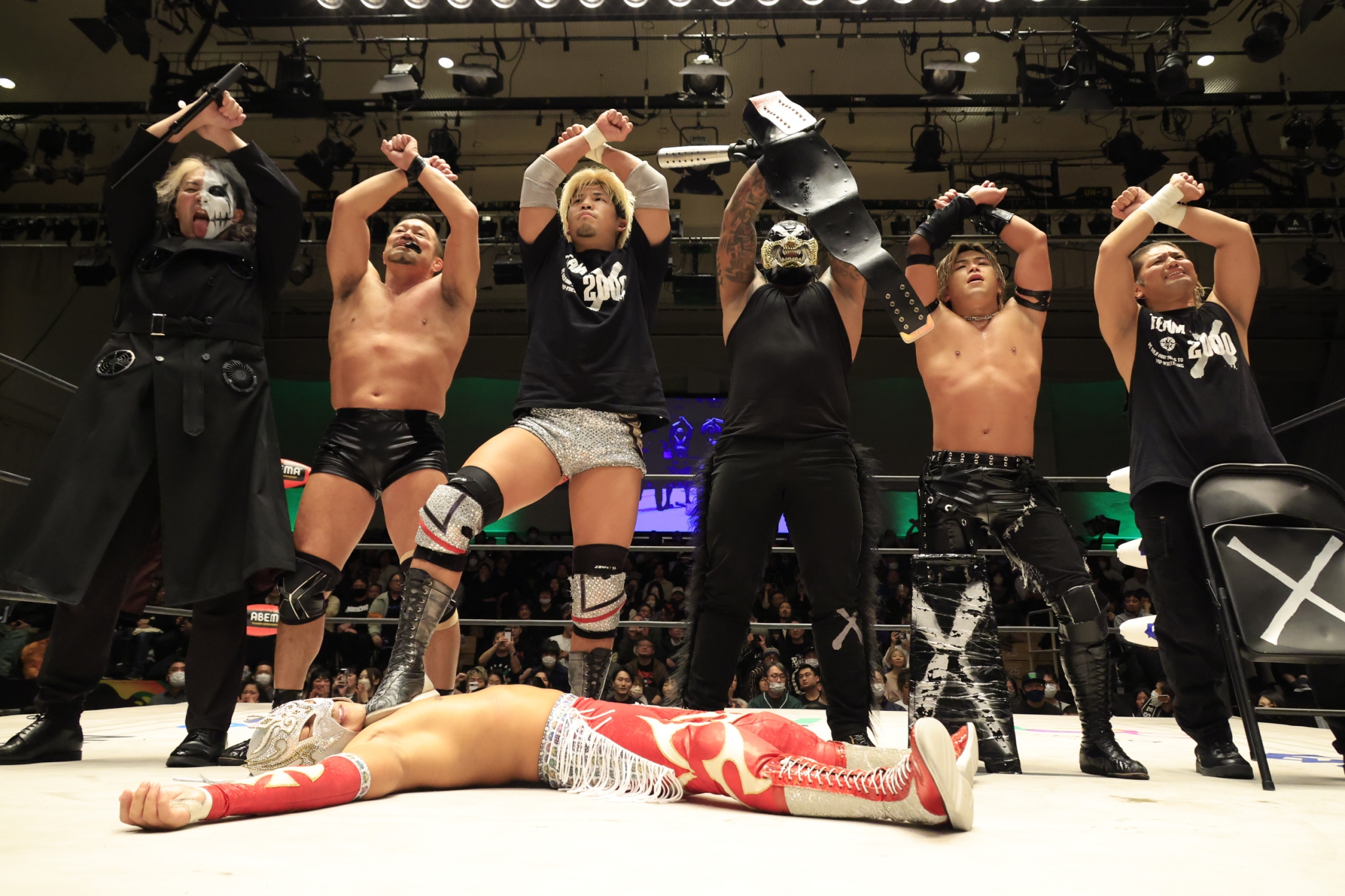 【BUSHIの話】「いやいやいやいや、せっかくだからさ、チャンピオンとして正々堂々とあいさつさせてもらったよ。俺が要求するのは次の後楽園、2月6日。夜の興行か? そこで前哨戦、タイトルマッチの前哨戦として6人タッグ。俺と内藤、そしてXを連れて、この後楽園に来るから。あっちのホワイトなんちゃらチームももう一人入れて6人タッグ、タイトルマッチの前哨戦やりましょうよ。そして2月6日、後楽園よりも先にこのシリーズどっかあるだろ? 空いてるとこ。そこで俺とHAYATA、シングルマッチやろうぜ。俺はお前に借りがあるんだよ。負けたまま終わるわけにいかないんでね。俺の要求はそのぐらいかな。今日はまあ調印式代わりにあいさつさせてもらったから」