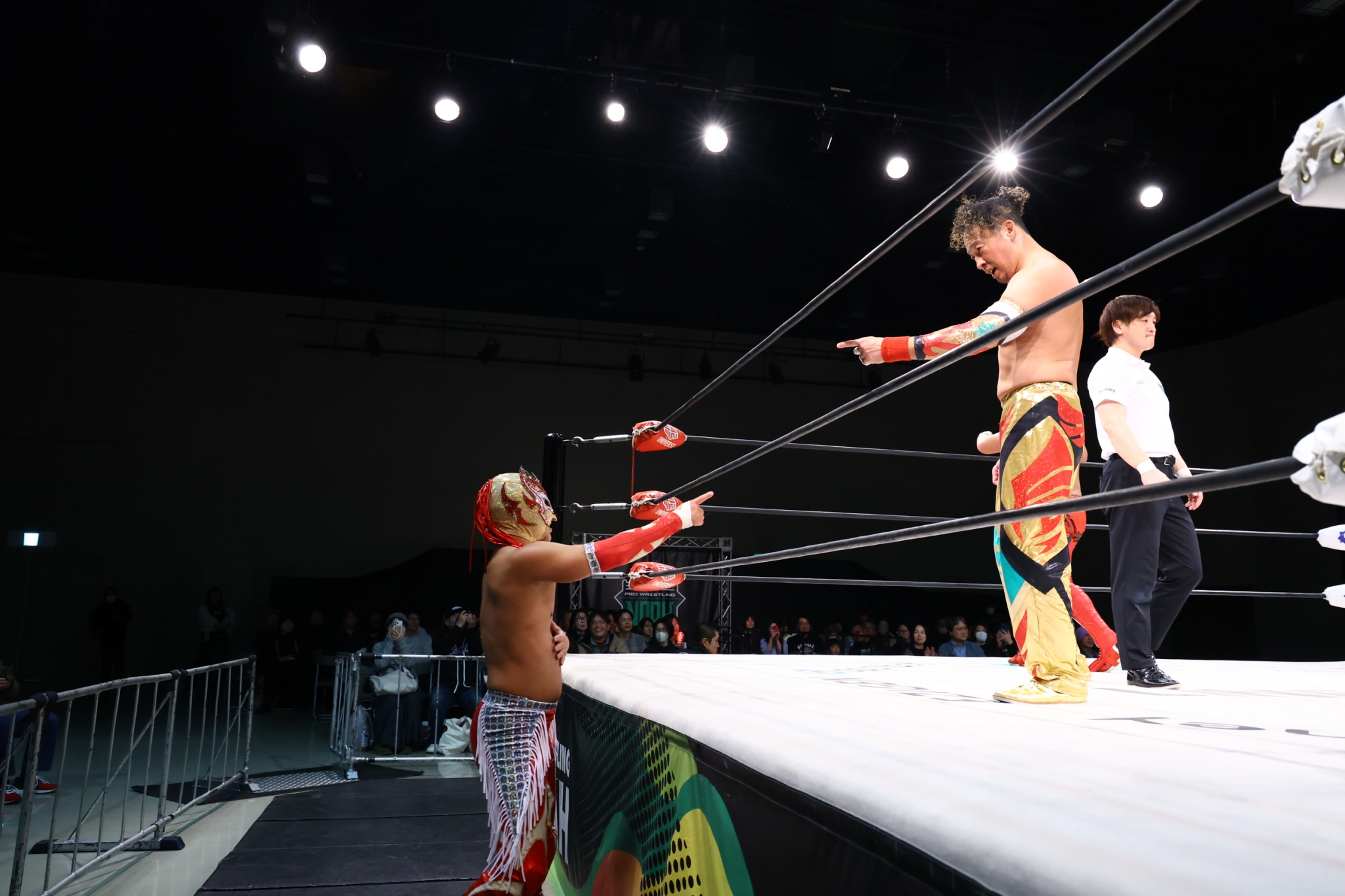 【OZAWAの話】「おーい! 清水。このスーパースターOZAWAが地元凱旋試合だっていうのに、チラホラと席に空きがあったぞ。おーい! プロレスリング・ノアの営業が悪いとしか言いようがない。ただ! 清水ね、大好きだからね。これからも地元に、実家に帰った時には元カノに『元気? ヤッホー元気?』みたいなLINEをしたり、そういった営業活動…LINEだったりDMだったりね。営業活動をして、この清水大会を私の元カノでいっぱいにしたいと思いますので! どうぞ皆さん、私の元カノになるという手もありだし、その光景を見るのを楽しみにしてくれ」